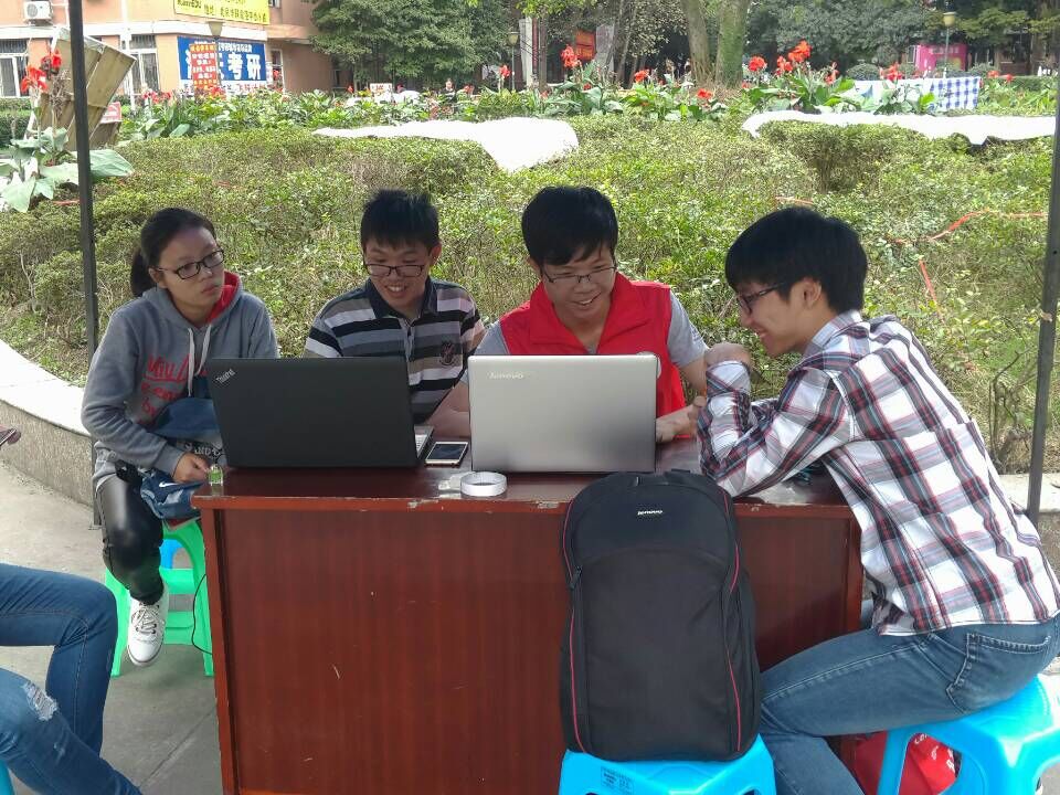 10月23日下午两点,青志协计算机分会的志愿者们在中心花园摆点,为全校同学免费装系统。
